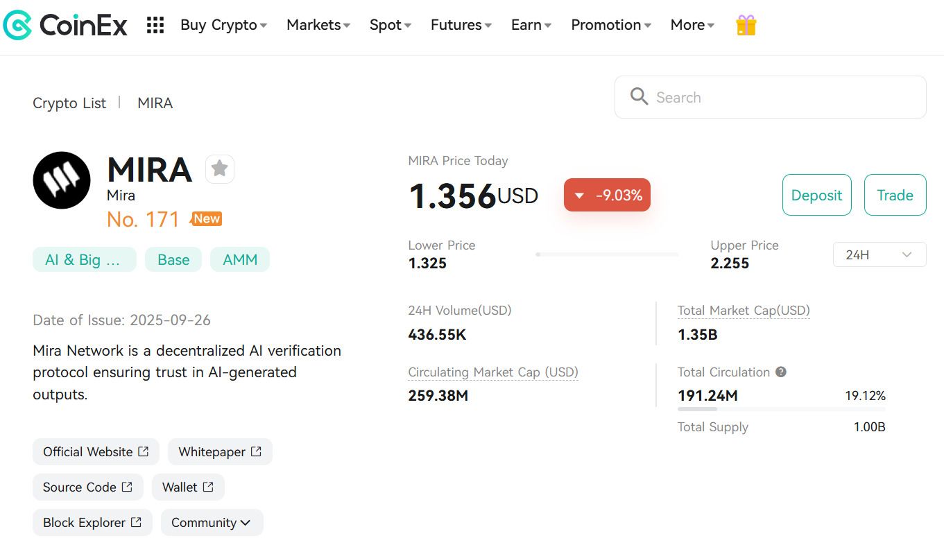 在多项公告发布后,代币价格在单日内飙升近 20%,显示出强烈的社区兴趣。如果你在交易,它现在已在 CoinEx 上线,这引发了更多交易量和讨论。这些举措突显了 Mira 如何将自己定位于 AI 和区块链的交叉点,尤其是在 AI 可靠性成为科技圈热门话题的当下。