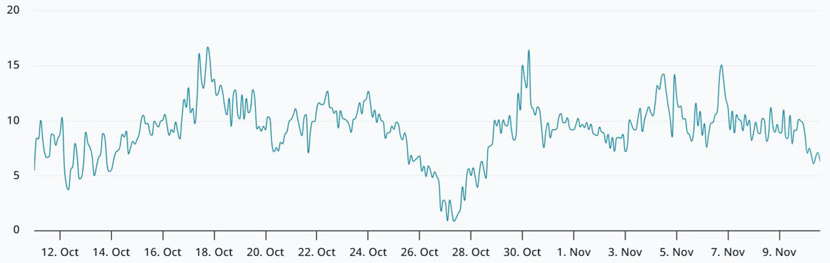 周一,BTC期权skew指标(看跌-看涨)降至6%,标志着11月份首次触及中性至看跌市场的边缘。分析师指出,当交易者预期出现明显调整时,该指标通常会攀升至10%或更高,因为看跌(卖出)期权交易溢价明显。目前尚不明确什么因素能恢复交易者对潜在12万美元上涨的信心,但当前市场格局明确透露出怀疑情绪。